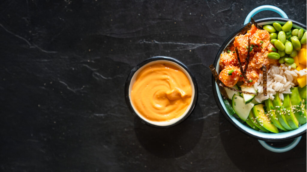 Poke Bowl Flexivegano con VEGANESA Sriracha.